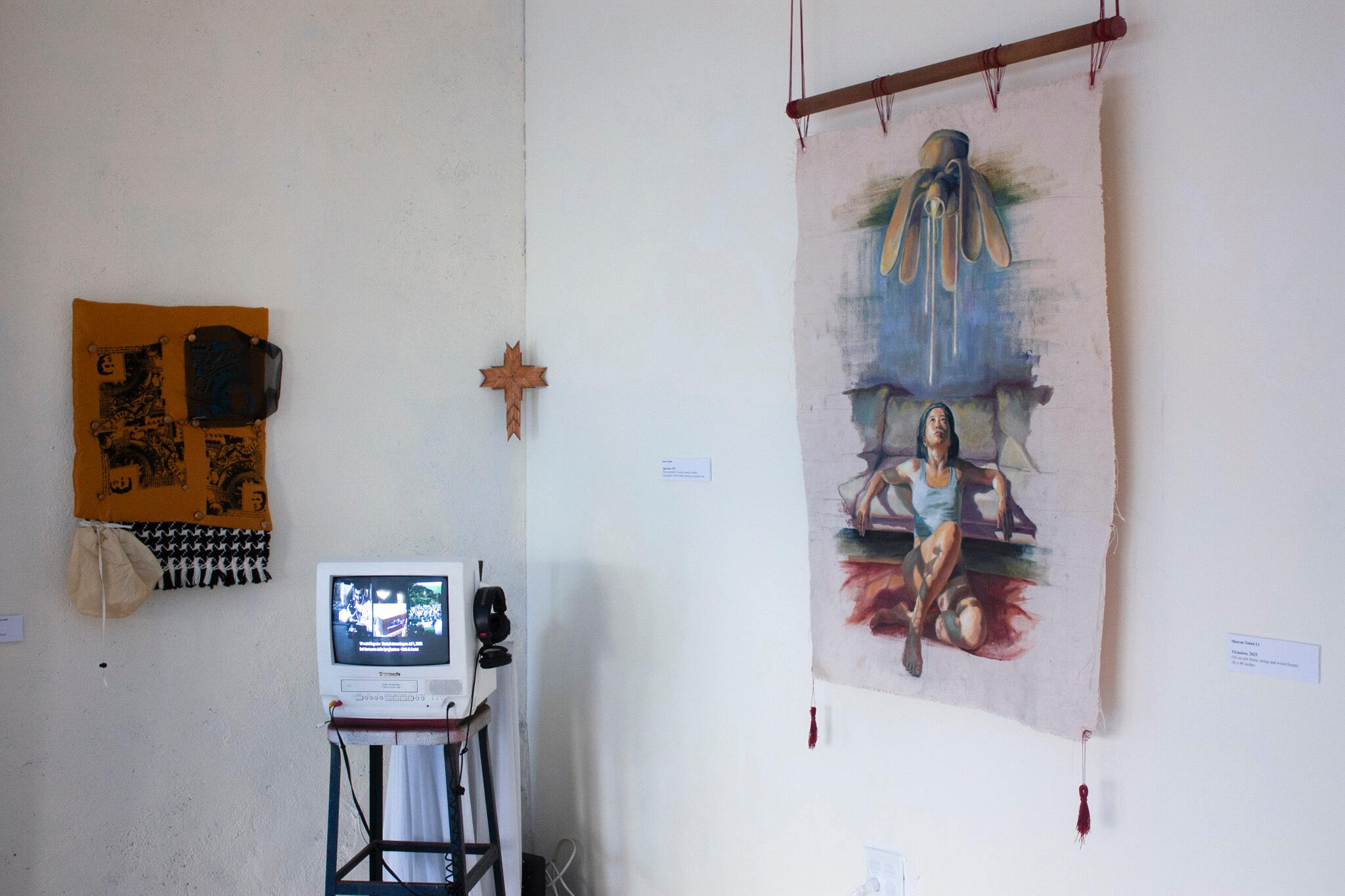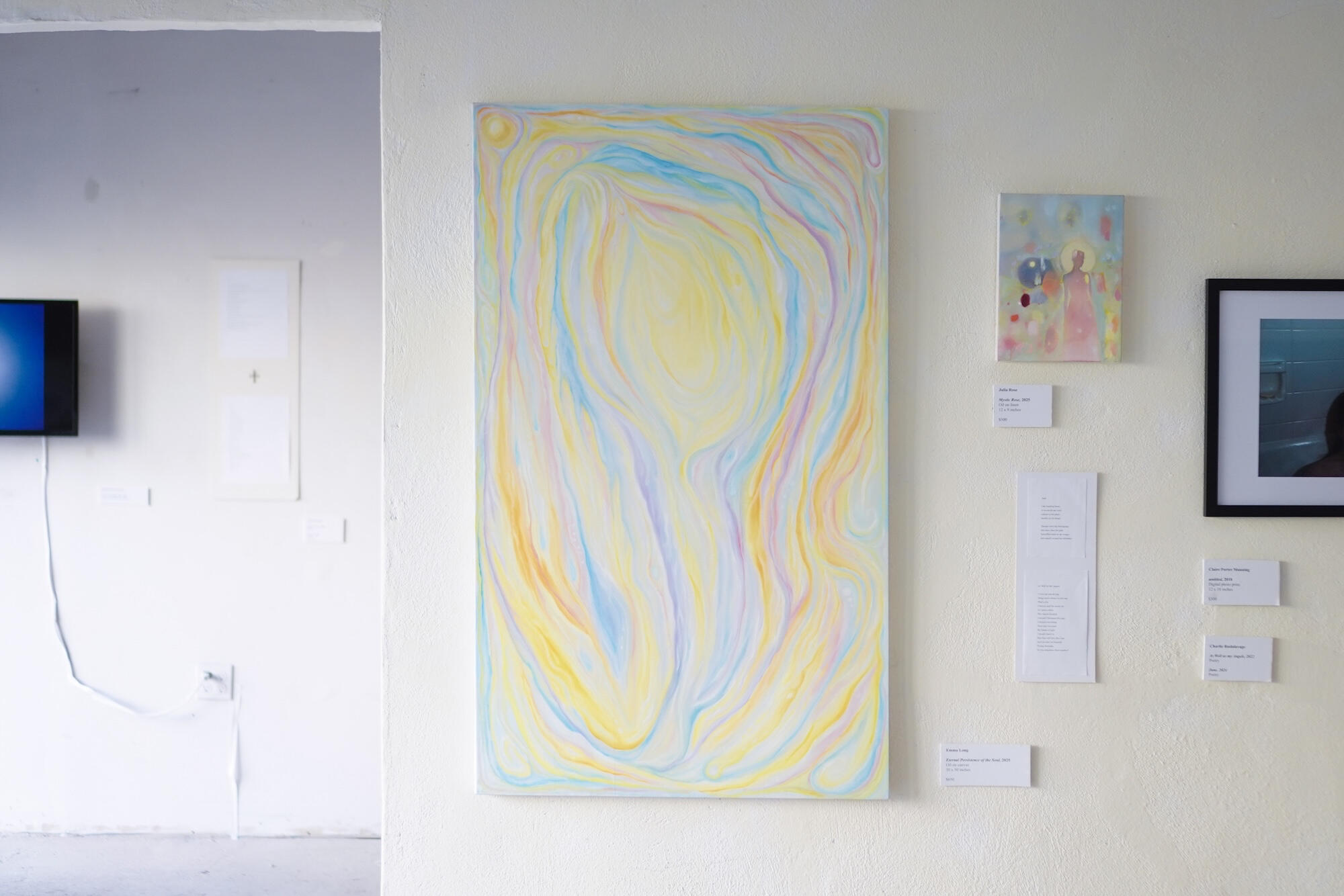 Angels, our debut exhibition, was hosted on July 17th at Studio 45 in East Williamsburg. The group exhibition investigated the concept of the angel: as celestial intermediaries, protectors, and guides, reflecting upon the enduring presence of the spirit after death. Featuring work from 18 artists working within a diverse range of mediums, the exhibition reflected a varied inquiry into personal experiences of grief, sacred presences, and the unseen. Religiosity, purity, sirens, inescapable forces, fluidity, and the unreachable saturate the works.Angels worked through varied interpretations of these limitless figures: drawing upon enchanted dreamscapes, visionary hopes, and personal loss. Artists presented elemental interrogations, sacred symbolism, mundane transcendence, and resistance from the oppressive boundaries of religion. The angel emerged as an unbounded figure: a shifting guide within the tumultuous interior of the artist; a rejection of the binary. The works grappled with the tension of grief, the comfort in spiritual ritual, and the endurance of memory.Featured Artists: